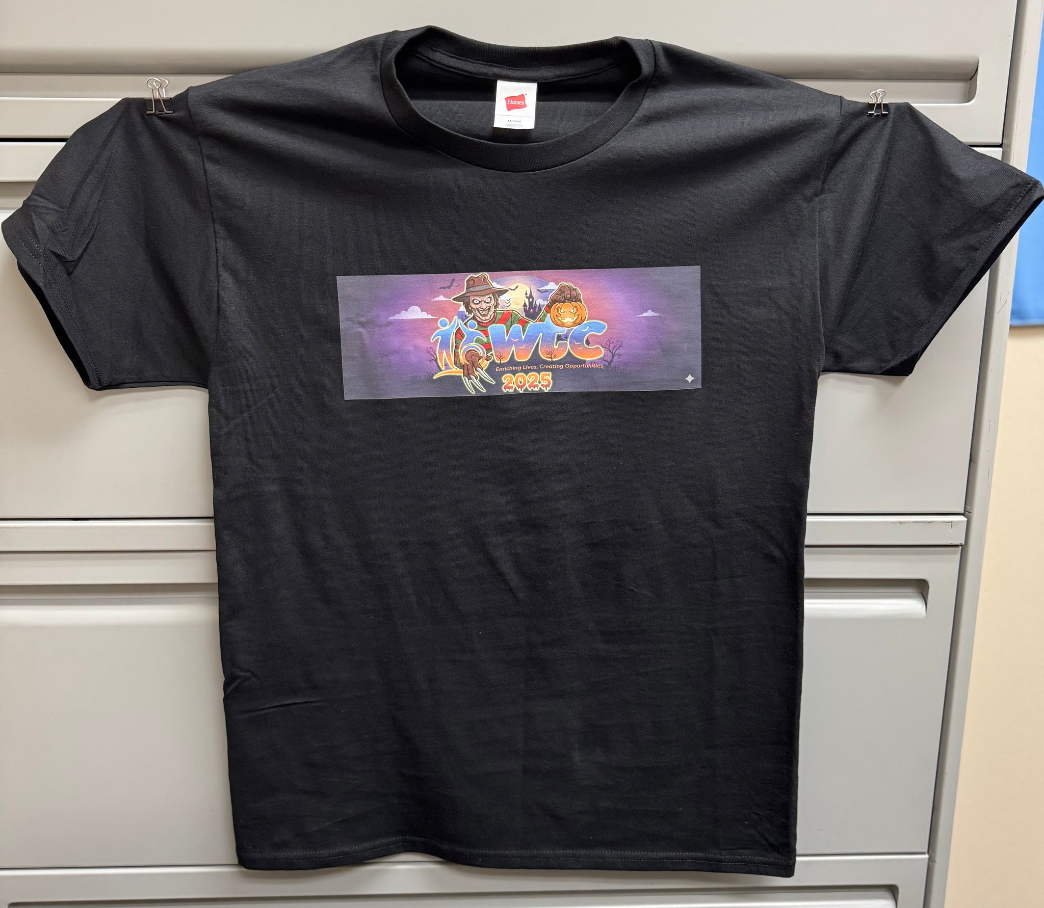 This exclusive design blends spooky fun with WTC’s mission to “Enrich Lives, Create Opportunities.” Whether you're attending a Halloween event, working at WTC, or just love unique seasonal apparel, this shirt is a must-have for your collection.